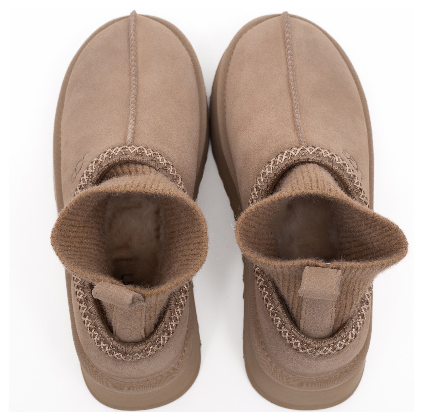 Ugg Tazz Knit – это ваш идеальный выбор для зимнего сезона! Эти стильные угги сочетают в себе уют и современный дизайн. Внутри они утеплены мягкой овчиной, которая дарит неповторимое тепло и комфорт, а снаружи выполнены из натуральной замши. Отложной вязаный носок сверху добавляет удобства при надевании и создаёт стильный акцент, завершая образ. Главная фишка модели – лёгкая платформа высотой 4 см из высококачественного противоскользящего полимера EVA, которая гарантирует устойчивость и долговечность. Этот сезонный хит идеально впишется в ваш зимний гардероб, добавив нотку элегантности и максимального комфорта. С Ugg Tazz Knit вы будете чувствовать себя уютно и стильно вне зависимости от погодных условий!